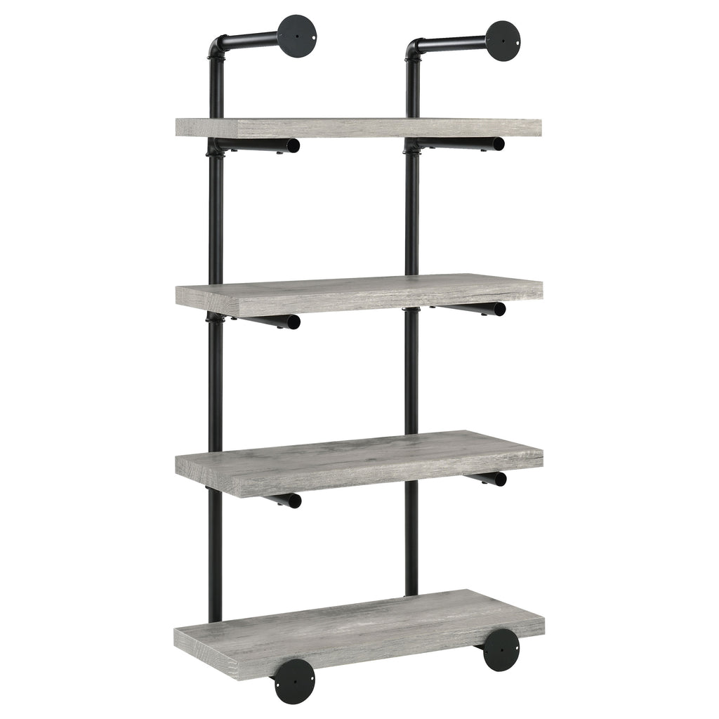This wall-mounted bookshelf blends industrial charm with practical design. Supported by a black plumbing pipe frame, it features four open shelves that provide ample room for books, décor, or office supplies. With its vertical orientation, this compact shelf maximizes storage while conserving floor space. Constructed from engineered wood, laminate veneer, and sturdy metal, it offers durability and strength, making it a versatile addition to any living room, bedroom, or office. Key Features: • Industrial wall-mounted bookshelf in rustic oak with black pipe frame • Four open shelves provide space for books, décor, and office storage • Durable black plumbing pipe frame enhances industrial style appeal • Vertical design maximizes storage capacity without taking floor space • Crafted from engineered wood, laminate veneer, and heavy gauge metal • Versatile piece works well in a bedroom, living room, or home office