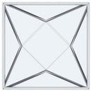 Simple geometric shapes combine to form a strikingly modern end table. The design features open, flared triangles in metal with a gleaming nickel finish, creating a dynamic base. A square glass top offers a smooth, airy surface, perfect for displaying decor or serving cocktails. The square base, rotated to form a diamond, adds an unexpected artistic touch. Perfect for a foyer or as a chic accent in a contemporary seating area, this table enhances any space with elegance and modern style.