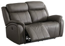 You've been looking for a piece that rests and restores after a hectic day, all while elevating your living room aesthetic. Enter this power reclining loveseat. Casually cool with contemporary bustle-back construction, it has a broad appeal thanks to on-trend dark gray upholstery. The seating area in real leather provides high-style living at a price you're sure to enjoy.