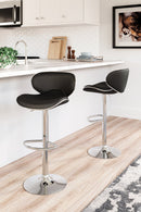 Have a taste for highly contemporary style? You're sure to find this posh and polished bar stool something to savor. Crafted with a sturdy steel frame beautified with a brilliant chrome-tone finish, this designer bar stool caters to your comfort with an adjustable height feature and swivel pedestal base. The cushioned seat and backrest are covered in a feel-good black faux leather upholstery for sleek, modern appeal.