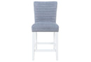 Comfortable seating without compromising your budget are the showcase features of this modern bar stool. Shown here in a light grey velvet fabric, this chair has nicely padded seat and slat design back-seat cushions, along with sturdy sleek styled legs. This barstool would look great in a kitchen or breakfast nook and is an easy way to update your eating area. Quality craftsmanship in every facet ensures durability and long-lasting wear. Comfort and attractive design make this chair a great choice in home seating and is sure to provide inviting relaxation for family and friends to enjoy.