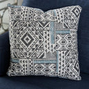 Imagine coming home to the comfort of this stylish corner piece. The simple L-shaped structure is perfect for any modestly spaced household. Wrapped in a unique denim-like fabric, it also features firm seats and loose cushions. Accompanied with three plush accent pillows, this sectional offers a priceless chance to relax and unwind. Pair it with the matching ottoman in patterned, deep navy chenille fabric for a trendy centerpiece.