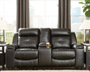 You dont just want to recline. You want to recline in high design. Wrapped in a fabulous black faux leather upholstery this reclining loveseat with 42 high back is everything you long forand then some. Ultra clean lines subtle curves and sumptuous comfort make it a sight for sore eyes and tired muscles. Heres the showstopper blue LED lighting along the loveseat base for a movie theater experience enjoyed from the convenience of home.