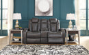 Looking for seating with all the bells and whistles This loaded power reclining loveseat has you covered. Get double the relaxationrecline your body then adjust your headrest. Pull up the center console to stash your remotes. With USB charging ports your devices will enjoy this loveseat too. With four stainless steel cup holders youll have drinks galore. All wrapped up in quality faux leather with fashion-forward jumbo stitching for a look and feel youll love.