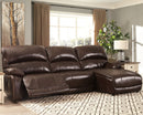 This reclining sectional makes you happy to be at home. Supple leather on the seating area with two-tone color is as comfortable as it is attractive. Faux leather upholstery on the sides and back is easy on the eyes and the wallet. High back design provides the support you need. From the Easy View power headrest to the footrests youre in control of your relaxation. Just plug in your device to the USB charging station and sit back relax and enjoy your space.