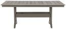 Its the dawn of a new day for gray. Embrace the style trend with this outdoor dining table. Crafted of HDPE material that combines the exceptional durability and weather resistance you need with the wood look you love this rectangular outdoor table takes al fresco living to a whole new level. Slatted top infuses a plank-style farmhouse-inspired touch that naturally sheds rainwater.